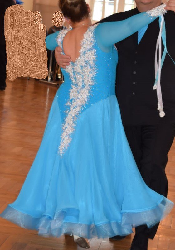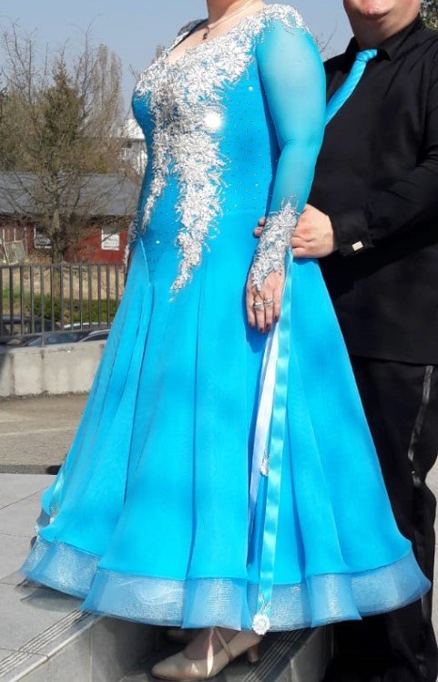 Wunderschönes blaues Senioren Standardkleid, Größe 44-46/168-172cm, kaum getragen, wie neu. Gereinigt und neu bestrasst.